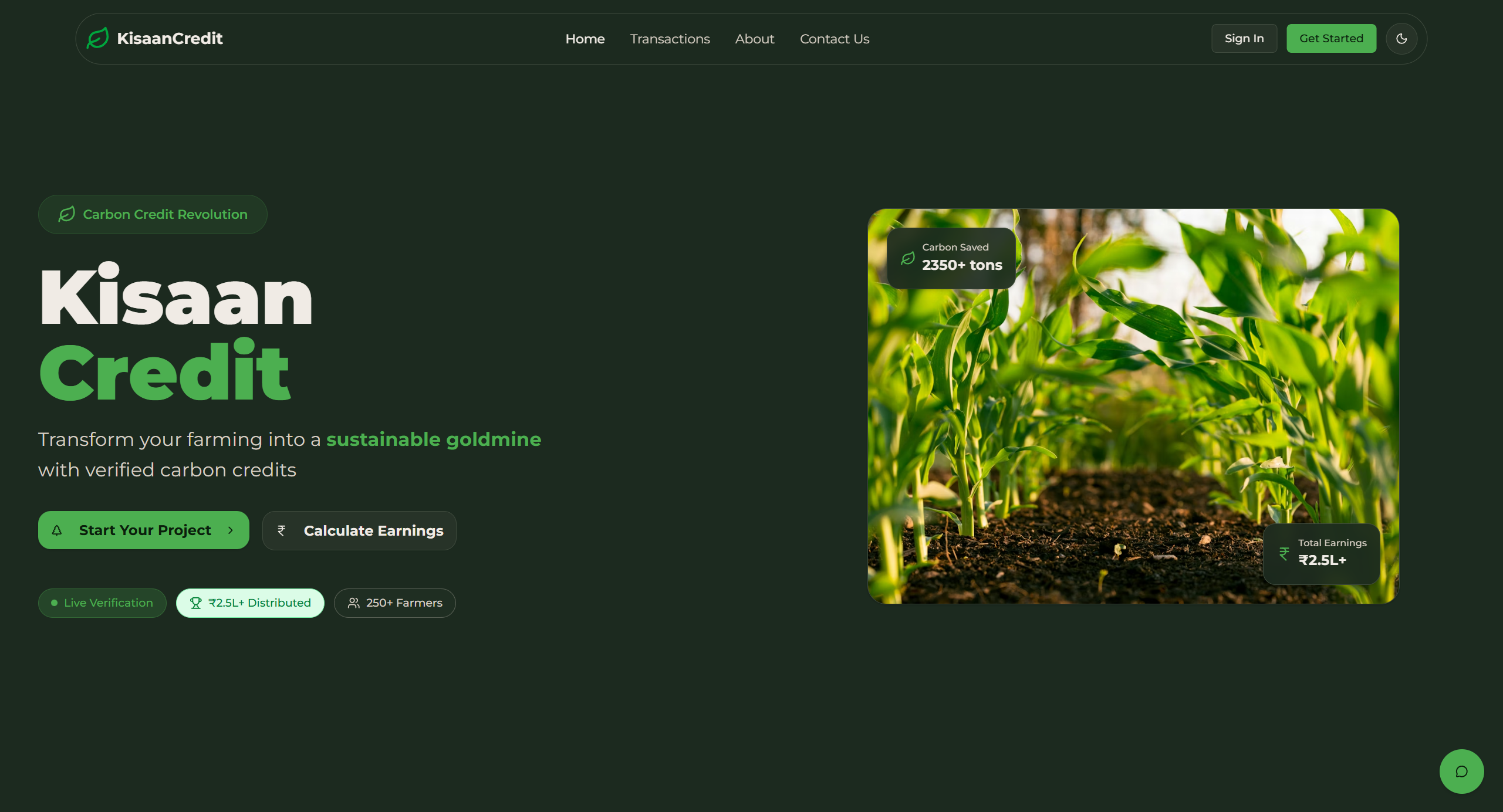 KisaanCredit empowers small-scale farmers to participate in the global carbon credit market. Traditionally barred by high verification costs, farmers can now use this platform to prove their sustainable practices via satellite imagery analysis and AI verification. Credits are minted as tokens on the blockchain, ensuring transparency and traceability. A gamified mobile interface encourages continued adoption of eco-friendly farming techniques.