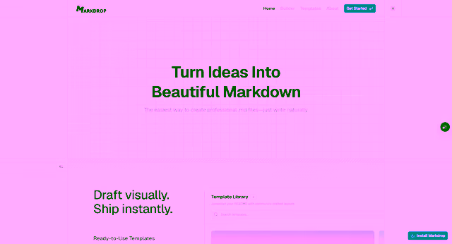 See all my projects →I built Markdrop to streamline documentation. It is a visual editor with a drag-and-drop interface and cloud sync, allowing developers to create professional READMEs without dealing with raw syntax.