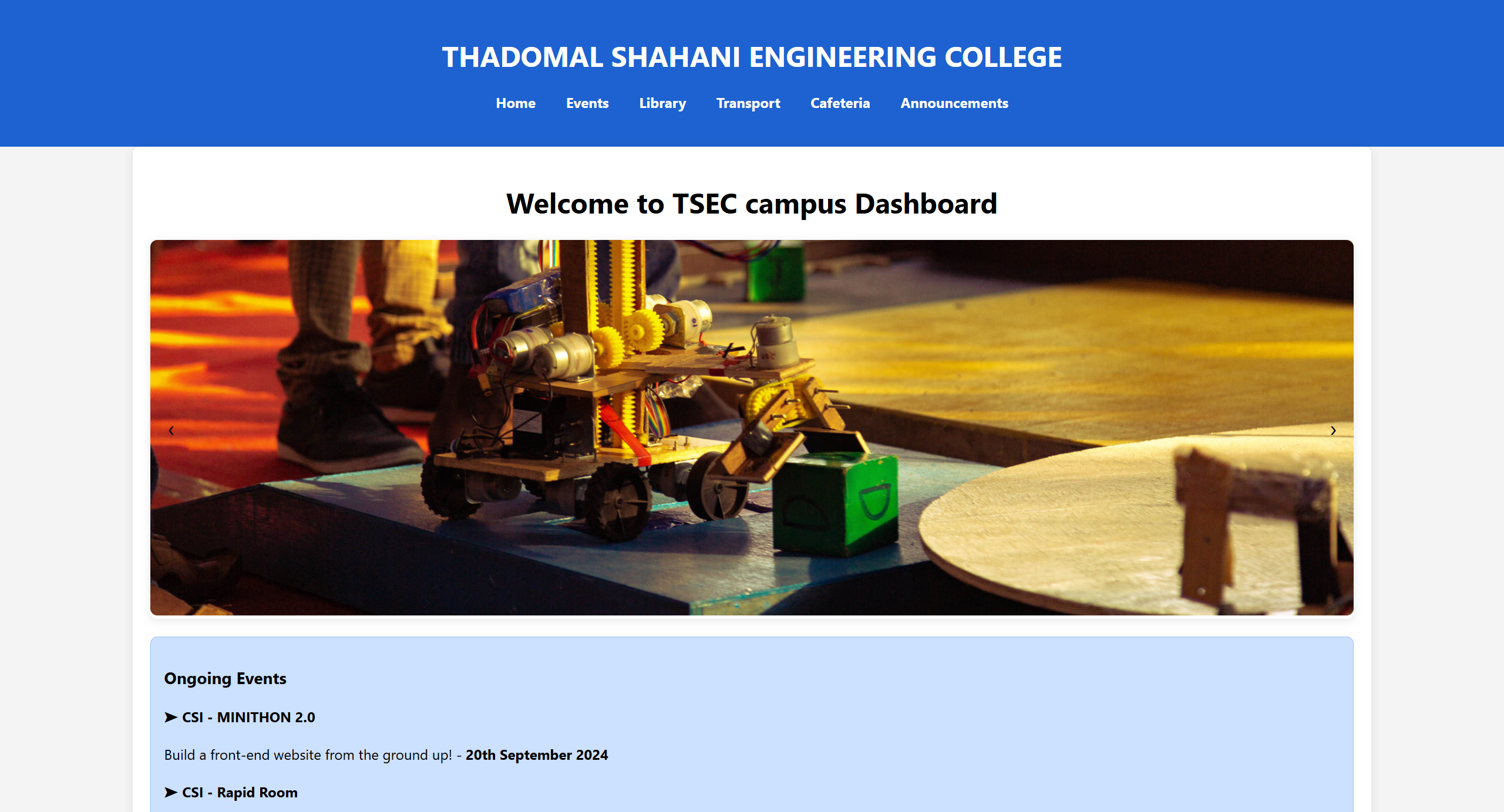 The TSEC Student Dashboard is a unified digital interface for the academic experience. It aggregates scattered information—timetables, exam schedules, attendance records, and notices—into a single, intuitive dashboard. Built with a focus on responsive design and accessibility, it helps students manage their academic responsibilities efficiently from any device.